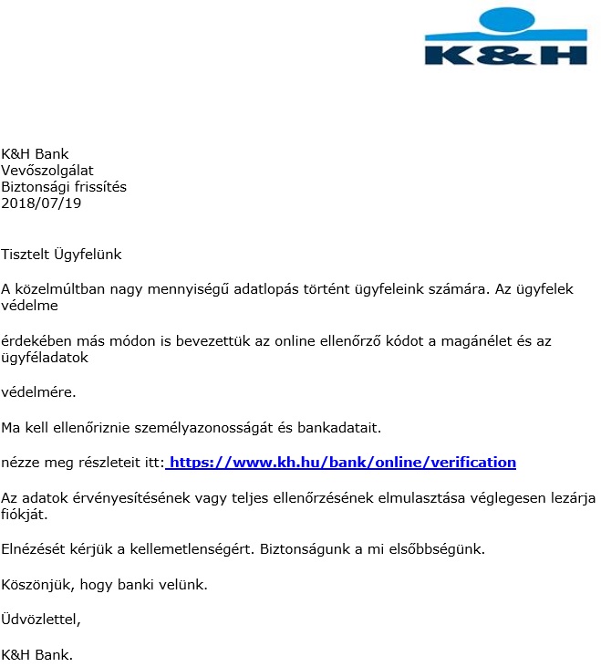 Az eredetileg tervezett június 26 ai határidő közeledtével ügyfeleink egyre nagyobb számban tettek és tesznek eleget adategyeztetési kötelezettségüknek. A bank kéri az ügyfelekt hogy a teljeskörűen olvashatóan kitöltött és a banknál bejelentett aláírással ellátott nyilatkozatot valamint amennyiben a bank még nem rendelkezik ezek másolatával okmánymásolatait küldje el postai úton a postafiók h 1821 budapest címre vagy az ügyfél bankunkhoz korábban bejelentett e mail címéről e mailben az ugyfelatvilagitas. A pénzügyi intézményeknek így az mkb bank nyrt nek is a pénzmosás és a terrorizmus finanszírozása megelőzéséről és megakadályozásáról szóló 2017. A k h bank válasza szerint kevesebb mint 1 százalék a még nem azonosított ügyfelek aránya a teljes ügyfélállományból.