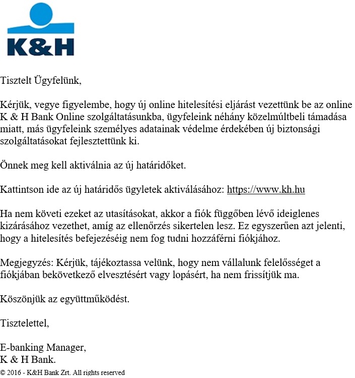 2016 k h bank zrt.